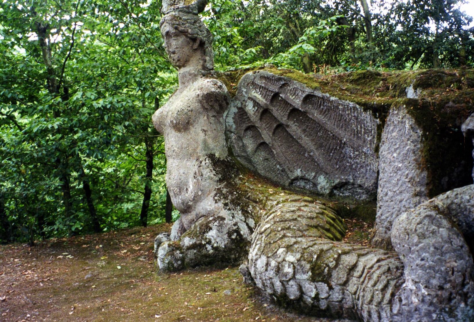 The Sacro Bosco’s spatial organization and mystical statuary are often considered to be disorderly which makes the park so unique. Yet, such a choice might have been a friendly competition with the neighboring Villa Caprarola of the Farnese family. The Caprarola was a great example of the grand and organized décor of the period; the fountain gardens of the Farnese are famous for their symmetry as well as the villa. Vicino Orsini himself was related to the Farnese through his wife Giulia Farnese (who should not be mistaken with her eponymous grandaunt, the mistress of Pope Alexander VI). Vicino loved Giulia dearly and after her death he decided to build the Sacred Groove as a getaway from his sorrow.